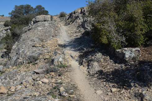 Los Riscos es un paraje al que dan nombre esas inconfundibles y llamativas risqueras que uno ve a la derecha de la vereda si la coge hacia el norte. Es justo en el punto donde se desvía la senda que va a parar al pozo Morillo. Divino. Vale la pena bajar del vehículo y acercarse y patear estos riscos. Ya cruza por su lomo una senda para las bicis. De estas sendas está plagada la zona y circuitos que pasan por lugares singulares de esta parte norte del término. Uno, que ama esta naturaleza virgen y no hoyada, tiene su guardada opinión sobre ellas.
